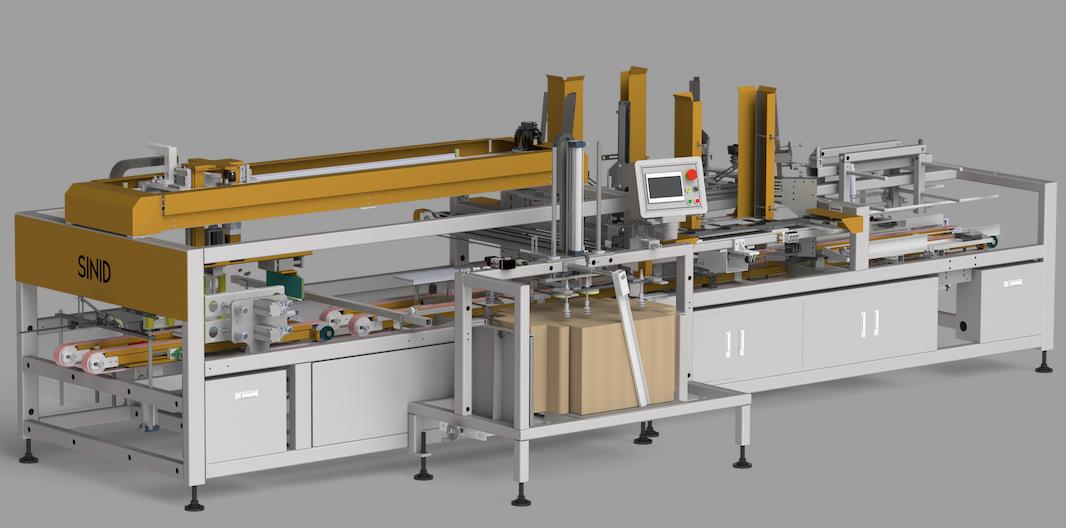 伺服電機(jī)驅(qū)動夾抱磚機(jī)械手精準(zhǔn)將磚垛放在紙箱上;